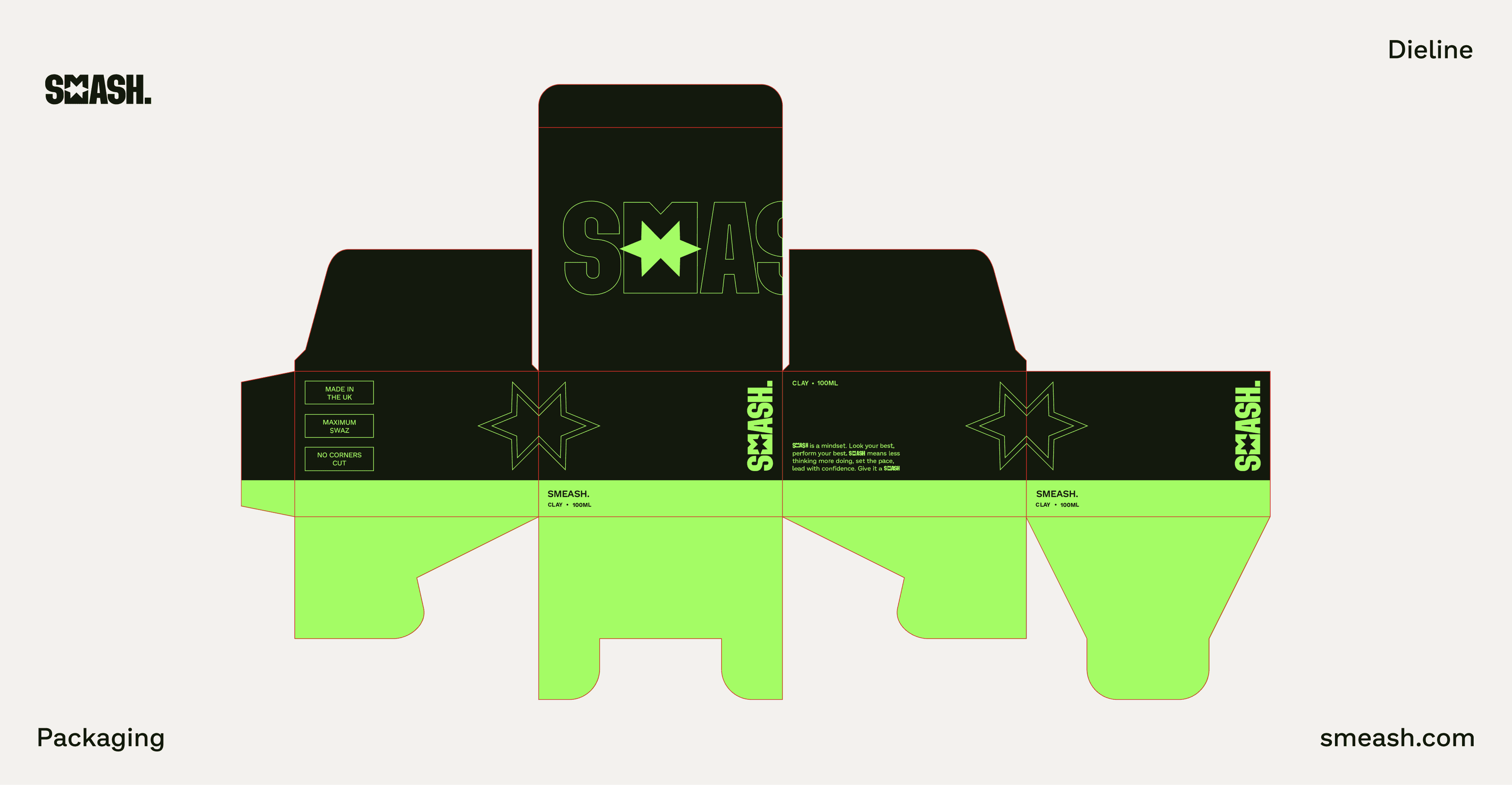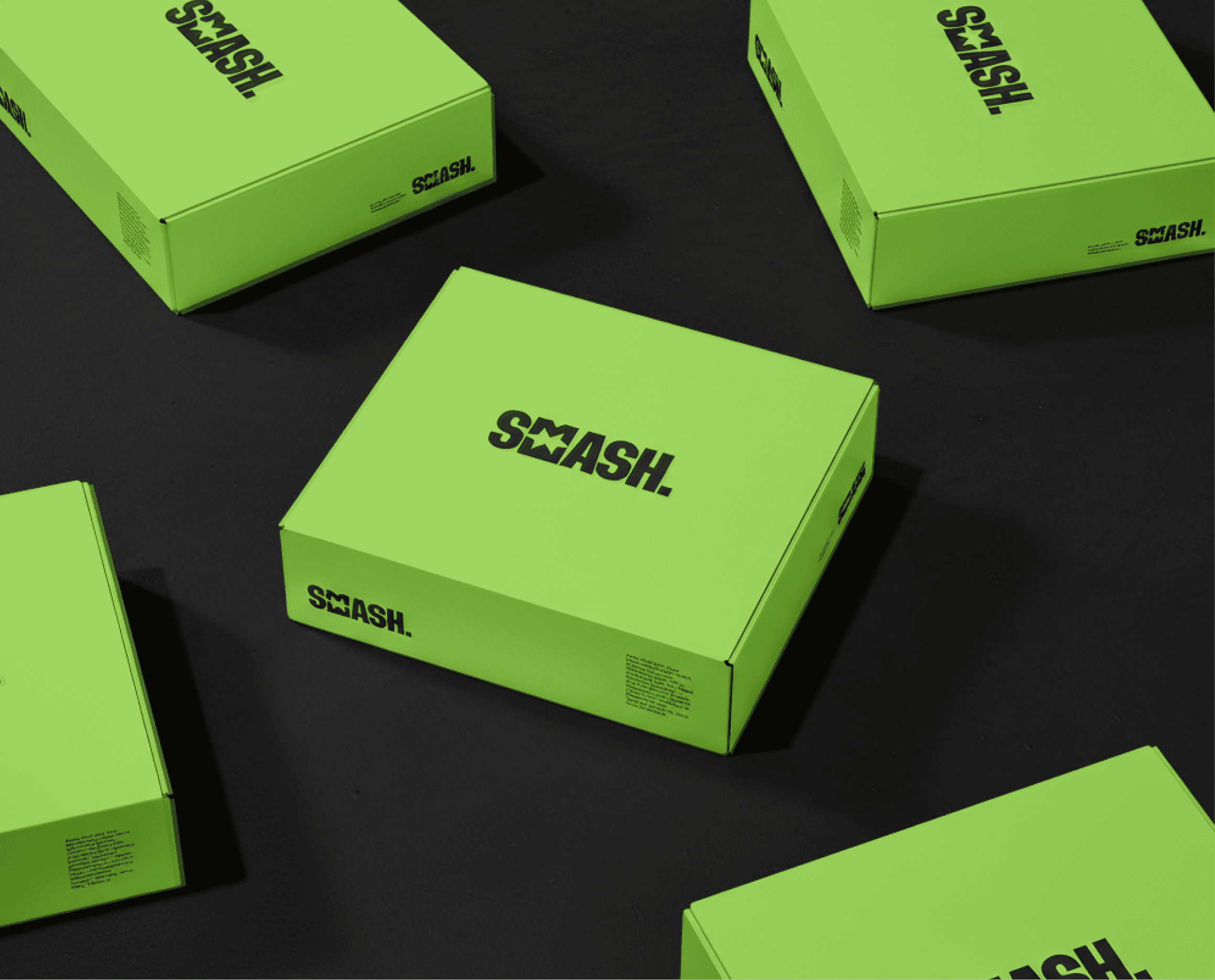 The visual world was engineered for instant recognition. A disruptive green-and-black palette that explodes on camera and on shelf. A custom wordmark that fixes the “Smeesh” misread and turns the smashed A into a distinctive icon.