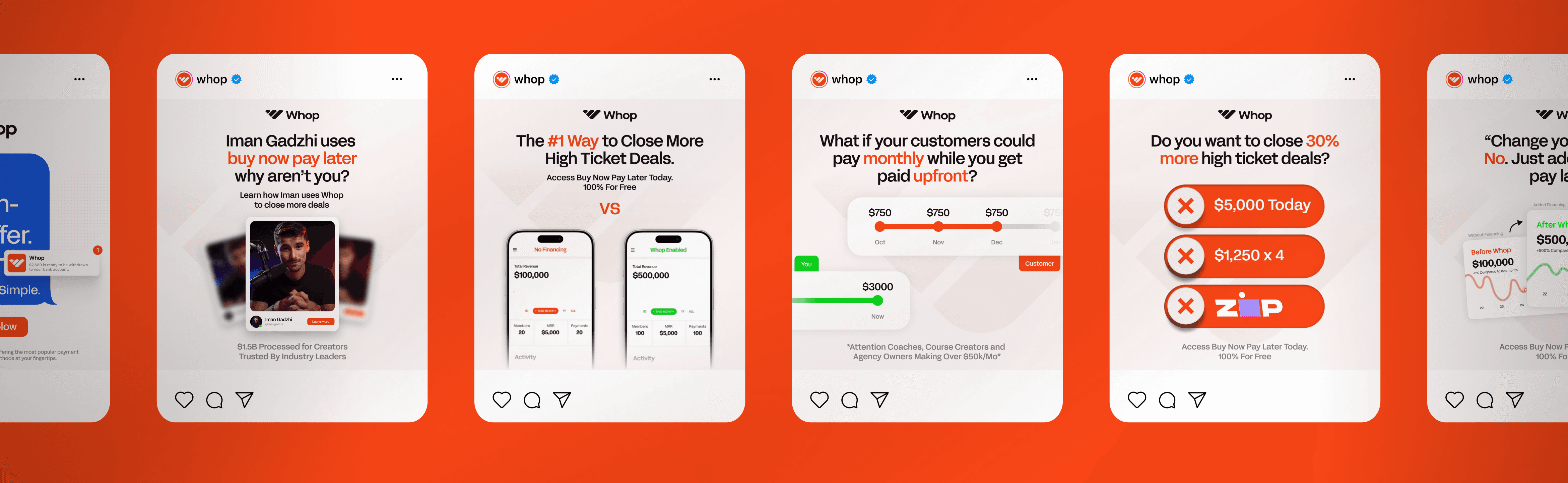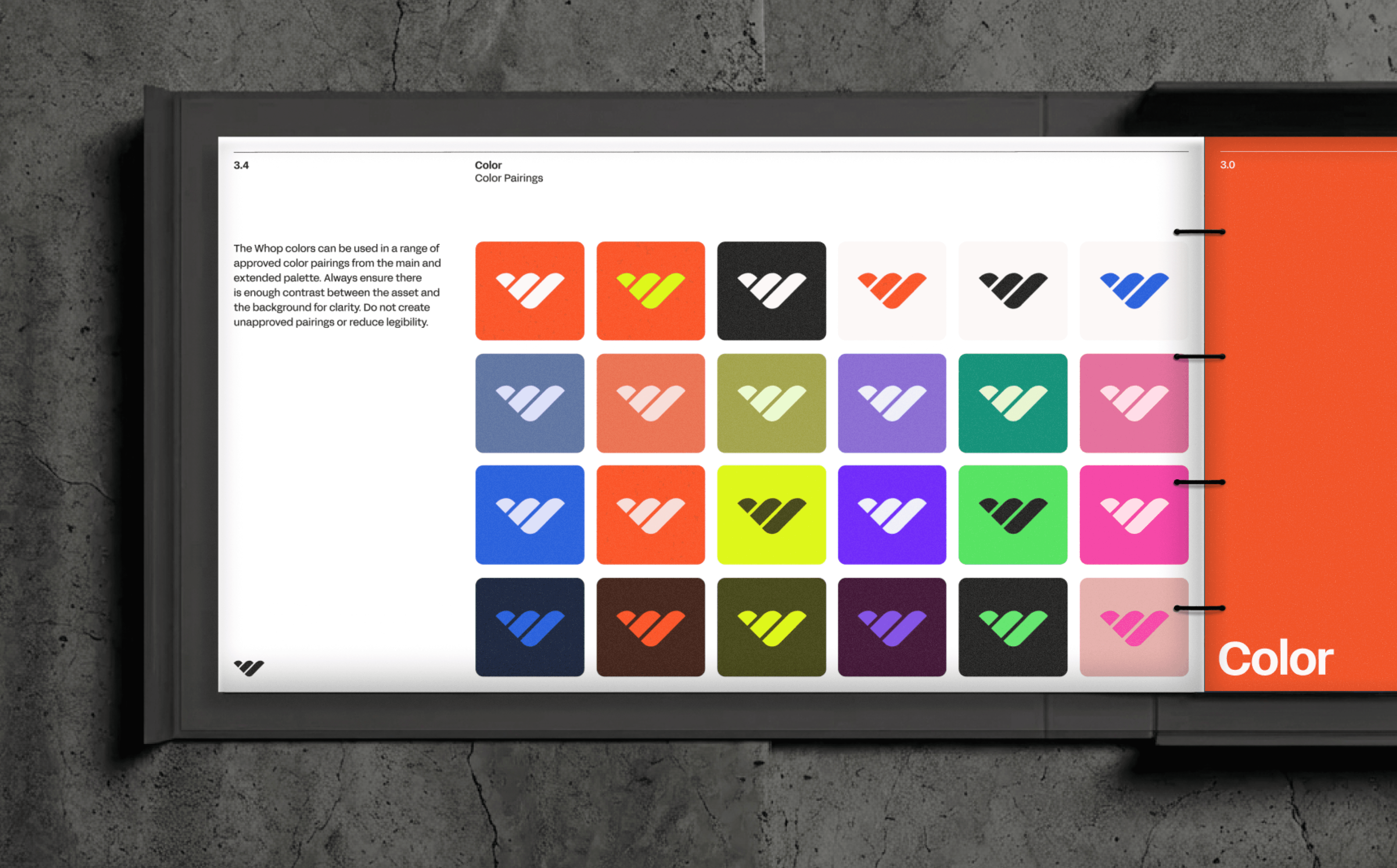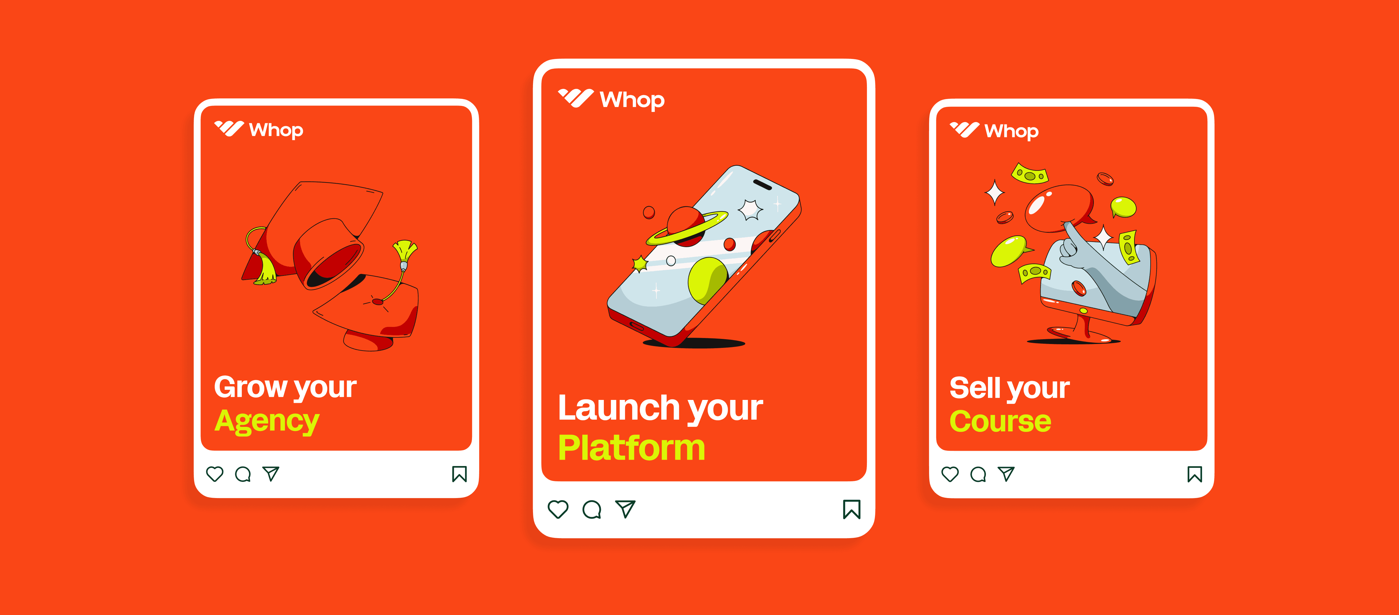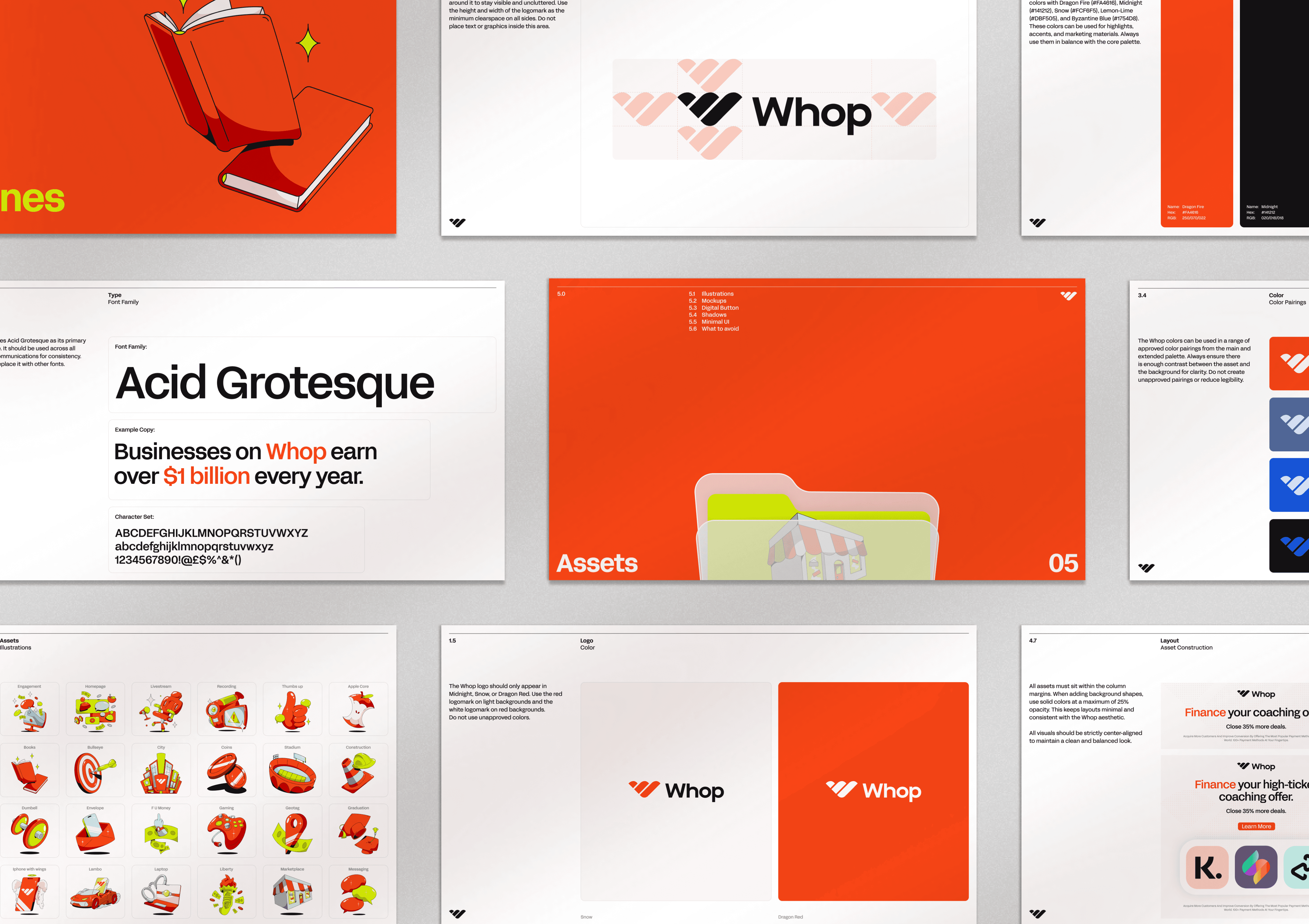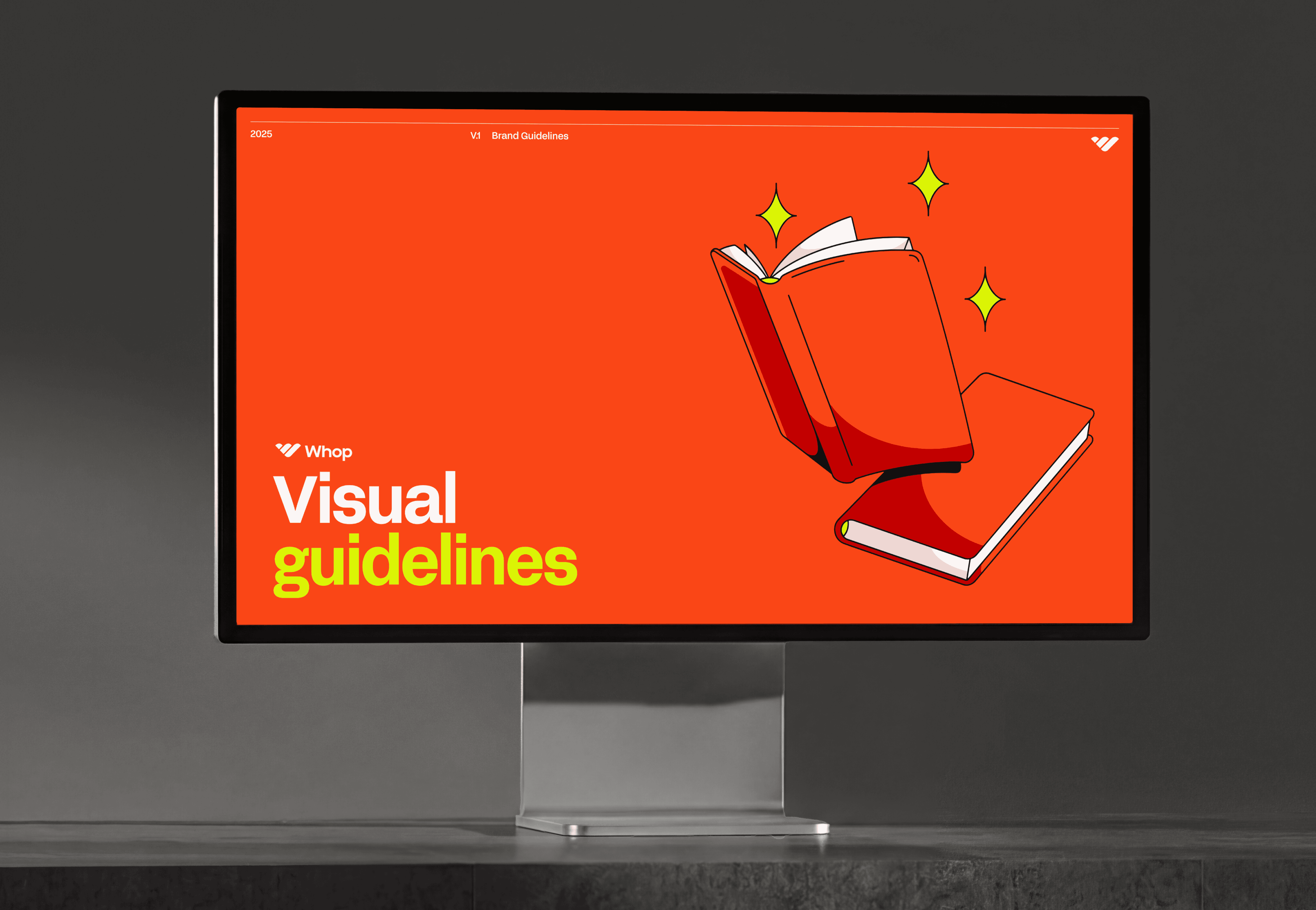 We anchored Whop’s inner world in a young, cool, techy creator culture. That meant building on an identity that built to be energetic and product‑forward, but never childish or chaotic. Our job was to define that personality clearly, then act as brand guardians to keep every new asset, campaign, and experiment plugged into that same “young, cool, tech‑native” core, instead of drifting back into generic startup visuals.